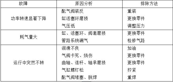 一、活塞式氣馬達故障及排除方法